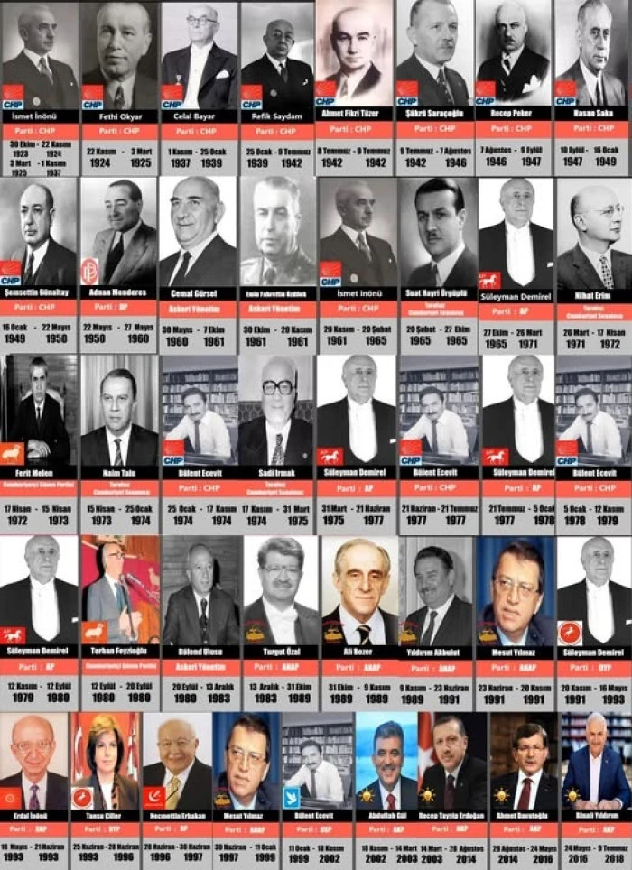 1923 den beri Türkiye Cumhuriyeti Başbakanları