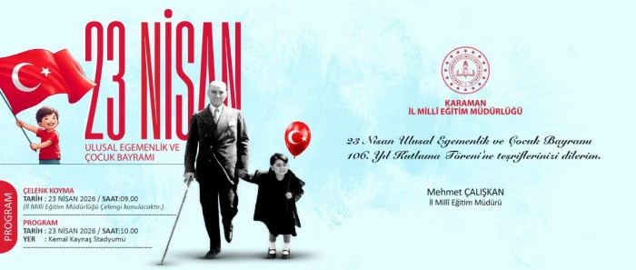 Karaman'da 23 Nisan kutlama programı şu şekilde: