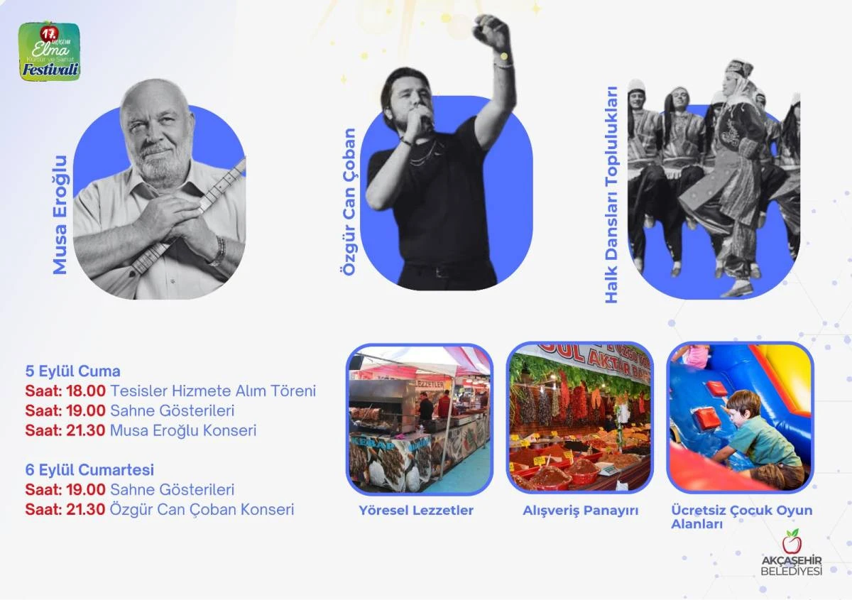 Akçaşehir Belediyesi, 5 Eylül’de hem yeni projelerin açılışını yapacak hem de Elma Kültür ve Sanat Festivali ile kasabada kültür ve eğlenceyi buluşturacak