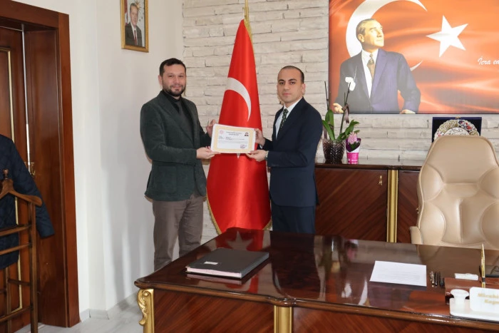 Kaymakam Mücahit Zıvlak tarafından; İlçe Milli Eğitim Müdürü Yusuf Atael, İlçe Gençlik ve Spor Müdürü Şakir Çolak ile İlçe Devlet Hastanesi Başhekimi Abdullah Çelik’e, görevlerinde gösterdikleri başarılı çalışmalar nedeniyle başarı belgesi takdim edildi.