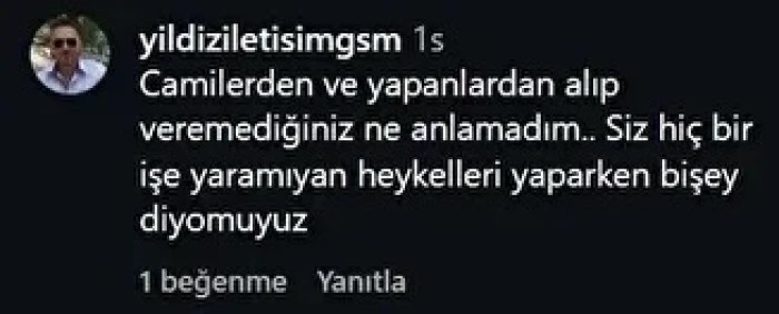 -Camilerden ve yapanlardan alıp veremediğiniz ne anlamadım? Siz hiçbir işe yaramayan heykelleri yaparken bir şey diyor muyuz?