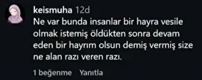 -Ne var bunda? İnsanlar bir hayra vesile olmak istemiş. 'Öldükten sonra devam eden bir hayrım olsun' demiş, vermiş. Size ne? Alan razı veren razı...