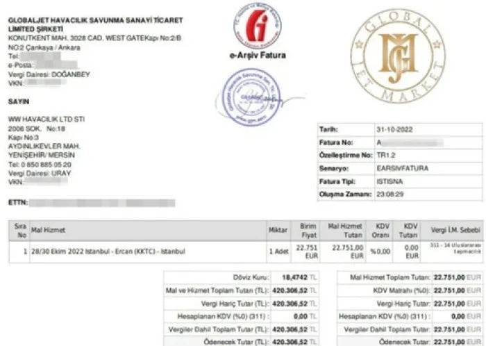 ÖZEL JETİN FATURALARI ORTAYA ÇIKTI