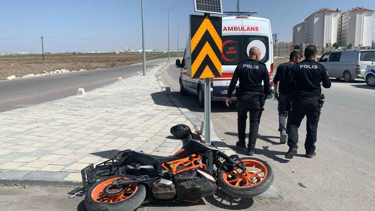 Karaman’da kontrolden çıkarak devrilen motosikletin sürücüsü ölümden döndü.