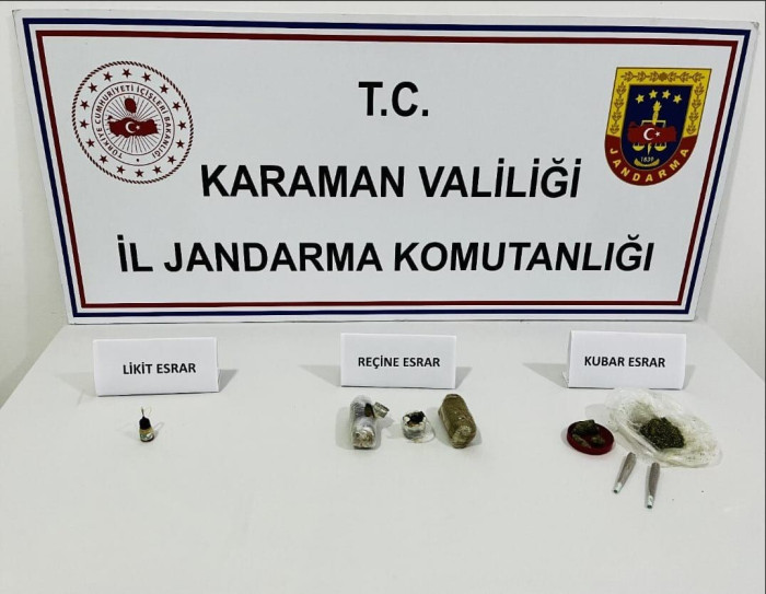 Evde ‘Flash’ isimli narkotik köpeğiyle arama yapan ekipler, kahve dolu cam kavanoz içerisine gizlenmiş 222 gram reçine esrar, 33 gram esrar ve 5 gram likit esrar ele geçirdi. H.Y., hakkında yasal işlem başlatılmak üzerine gözaltına alınarak İl Jandarma Komutanlığına götürüldü.