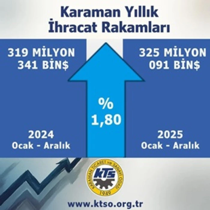 Karaman’ın ihracatı 2025 yılında yüzde 1,80 artarak 325 milyon doları aştı