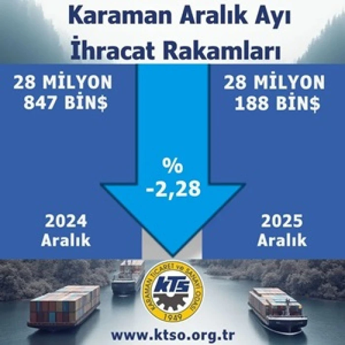 Açıklanan verilere göre Karaman’ın ihracatı, 2024 yılı Aralık ayında 28 milyon 847 bin dolar olarak gerçekleşirken, 2025 yılı Aralık ayında 28 milyon 188 bin dolara geriledi. Bu rakam, geçen yılın aynı ayına göre yüzde 2,28 oranında düşüşe işaret etti.