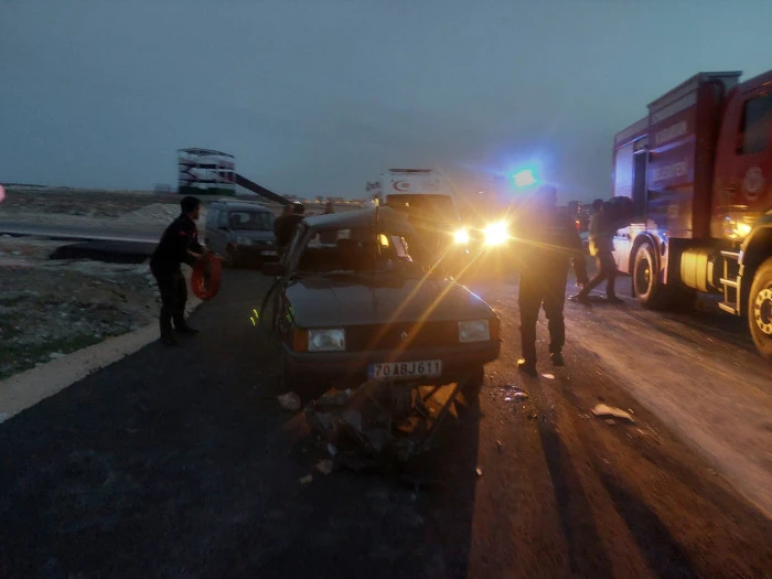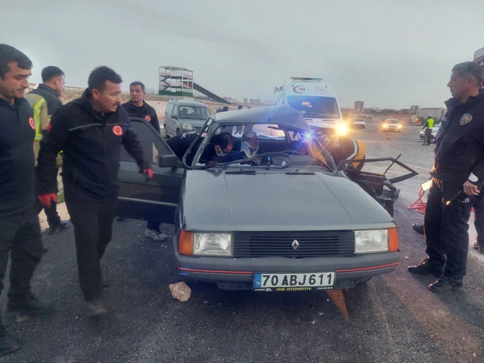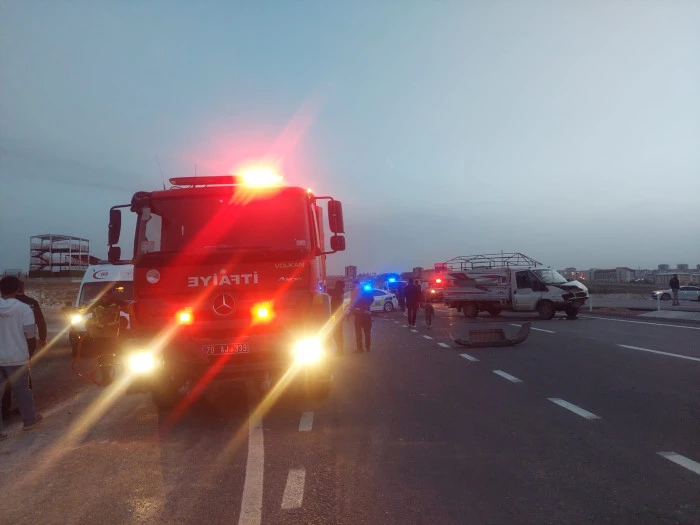 Kaza, OSB'deki Karaman Çevre Yolu'da (TEKMARSAN üstü mevkiinde) meydana geldi. Süt kamyoneti ile otomobilin çarpıştığı olayda, otomobilde bulunan bir kişi araç içerisinde sıkıştı. İhbar üzerine olay yerine sevk edilen Karaman Belediyesi İtfaiye ekipleri, yaptıkları çalışmayla yaralıyı bulunduğu yerden çıkararak sağlık ekiplerine teslim etti.