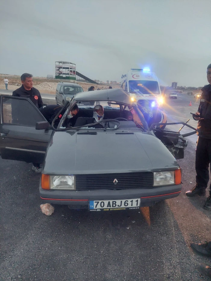 Karaman Organize Sanayi Bölgesi çevreyolunda süt kamyoneti ile otomobilin çarpışması sonucu 3 kişi yaralandı. Otomobilde sıkışan bir yolcu, itfaiye ekiplerince çıkarıldı.