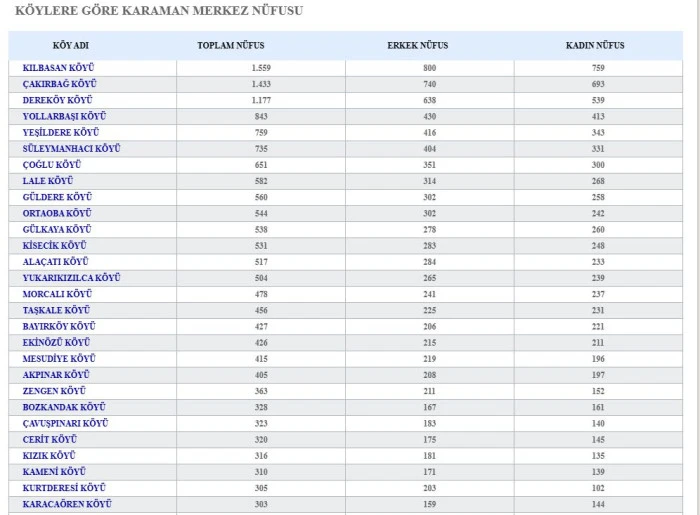 Karamanın Hangi Köyünde Kaç Kişi Yaşıyor ?