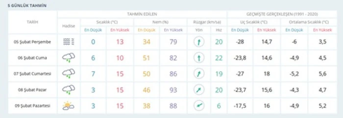 - 7 Şubat Cumartesi günü ise yağışla birlikte sıcaklık 7–15 derece aralığında seyredecek.